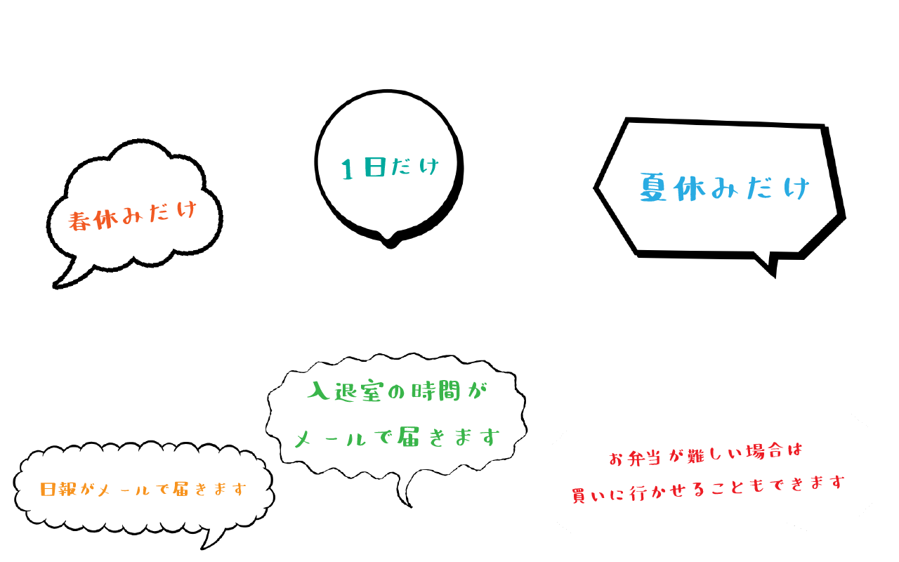 | 1日あたり | (午前から) 学校休業日、土曜日など 2,500円 (午後のみ) 昼食後、放課後など 1,700円 |